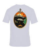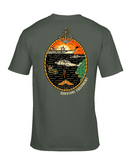 The Heavyweight Survival Equipment T-shirt is designed for those who embody readiness and adventure, featuring an exclusive full-back illustration inspired directly from the initial concept sketch and core elements of survival at sea. This shirt uniquely celebrates the essence of maritime courage, incorporating: