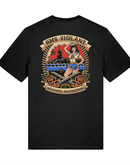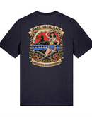 This exclusive shirt features a bold, vintage-inspired graphic on the back, starring a classic sailor pin-up set against the iconic silhouette of a Vanguard-class submarine. Framed by naval chainwork, roses, and waves, the design proudly displays the "HMS VIGILANT WEAPONS ENGINEERING" banner, celebrated with every vibrant detail. The front sports a smaller, matching crest for a touch of subtle pride.