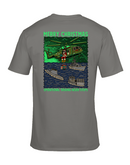 Merry Christmas Operational Tasking Never Stops tee: a proper salty Christmas drop for the lads and lasses who keep the job running while everyone else is tucking into turkey. Featuring a festive green Merlin-style cab slinging presents to boats, skimmers and RM craft, it is a nod to those still on watch when the rest of the world is stood down.