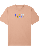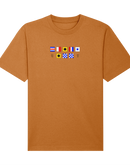 This tee from The Chits Inn features a line-up of authentic signal flags used by the Royal Navy and mariners for centuries to communicate at sea. Each flag on the shirt is a meaningful symbol from the International Code of Signals—a visual language sailors used long before radios were standard issue. Whether conveying vital safety instructions, man-overboard alerts, or messages of camaraderie, these flags are integral to naval heritage and maritime tradition.