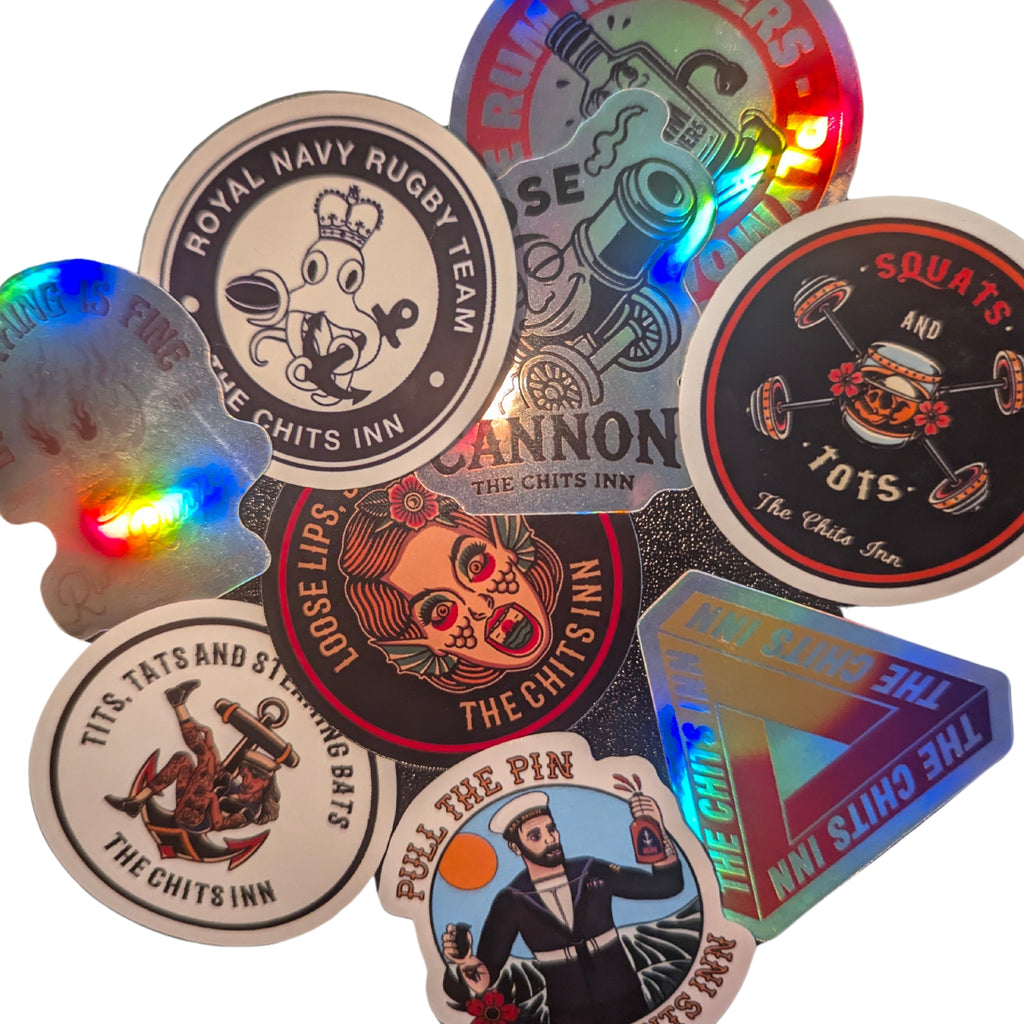 Add a touch of unique style to your devices with these eye-catching Chits Inn holographic stickers! Perfect for personalising your phone, laptop, water bottle, or any smooth surface. Each sticker measures 5cm in diameter, makin...
