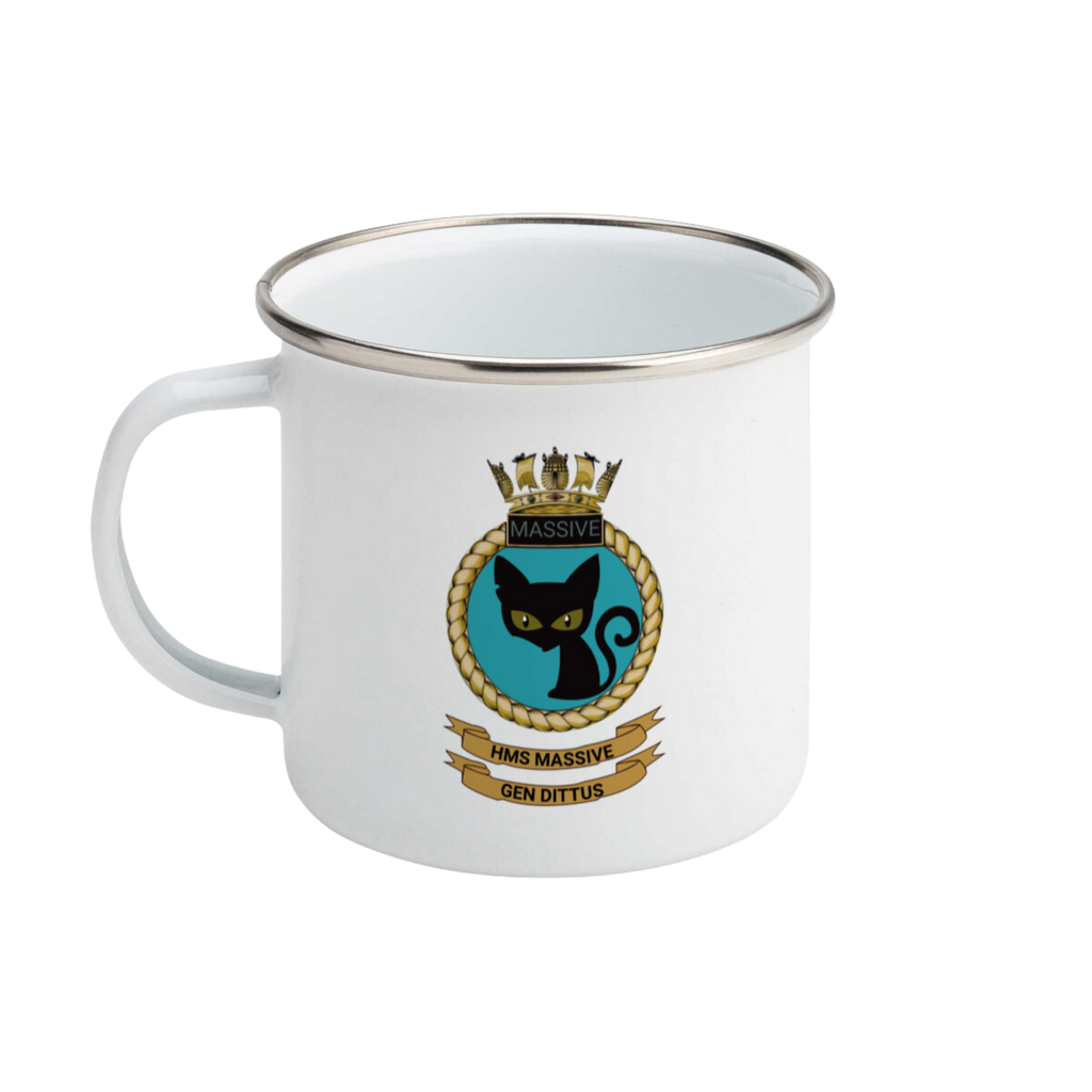 A classic ship's mug, issued to every sailor onboard HMS Massive. Available in both durable ceramic and rugged enamel finishes to suit any lifestyle—perfect for use at sea or ashore.