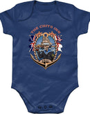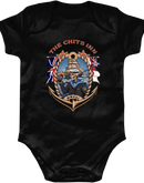 Congratulations Jack! Earth's wrinkliest, most yeti-like tot has finally been granted the chance to wear something other than a diaper. Introducing the Official HMS Massive Baby Grow - they know it can be scary to move into new territory, but once you take that first step past your fear of wearing clothes just like Jack or Jenny (since we all have our dirty-ovies) You'll settle right in and never want to wear anything else ever again. Now go on off and explore, adorable little sprog!