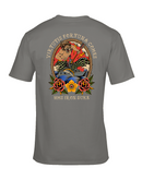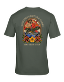 Celebrate Royal Navy pride and maritime history with the exclusive HMS Iron Duke T-shirt, designed by The Chits Inn. This bold, tattoo-inspired design features a fierce lion-headed Poseidon wielding a trident above a modern warship, surrounded by traditional naval motifs, roses, and the ship’s motto “Virtutis Fortuna Comes.” The ship’s pennant number, F234, is prominently displayed, making it a must-have for sailors, veterans, and naval enthusiasts alike.