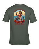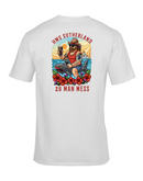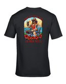 Introducing the exclusive 26 Man Mess Tee from The Chits Inn, designed especially for the crew of HMS Sutherland! This vibrant, custom artwork captures the camaraderie, adventure, and spirit of the famous 26 Man Mess. Featuring bold colors and dynamic imagery, the tee showcases a rugged sailor riding a fierce shark, pint in hand, set against a stunning ocean sunset with HMS Sutherland sailing proudly in the background. Accented with striking tattoos, tropical flowers, and playful nautical elements, this tee is a celebration of life at sea and the legendary bond shared by shipmates. Made from high-quality, comfortable cotton, it's perfect for casual wear on shore or relaxing in the mess. Show your pride and make a statement—this limited edition tee is a must-have for every member of the crew and anyone who loves naval tradition!
