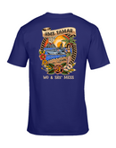 Celebrate the spirit of HMS Tamar with this exclusive tee from The Chits Inn, designed for the WO & SR’s Mess. Inspired by classic naval tattoo art, this vibrant design features HMS Tamar cruising under a fiery sunset with a dramatic volcanic island in the background. A vintage pina-up hula dancer greets the ship from a tropical shore adorned with skulls, flowers, and dice, symbolizing adventure and camaraderie. The iconic ship’s crest and pennant number add authentic detail, while bold foliage and nautical rope frame the scene. Crafted for comfort and style, this tee is the perfect way to show your Tamar pride—ideal for mess members, deployment souvenirs, or casual shore leave.