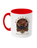 - Elevate your daily brew with the HMS Portland 26 Man Mess Mug, a stylish and practical addition to any sailor's collection. This 11oz glossy ceramic mug boasts a bright white exterior that provides the perfect canvas for the ship's distinctive insignia. The mug features a coloured handle and inner, adding a touch of naval flair to your coffee or tea ritual.
