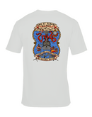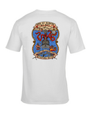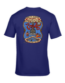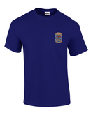 This custom T-shirt combines comfort and style with a striking, full-color crest printed on the back: