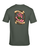Make waves in your mess or on your run ashore with The Chits Inn's exclusive Hand Grenade Tee! This bold design features a striking blue hand clutching a classic green grenade, framed by authentic rope work and vintage-style banners-all inspired by traditional sailor tattoo art that has adorned seafarers for generations.
