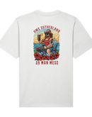 Introducing the exclusive 26 Man Mess Tee from The Chits Inn, designed especially for the crew of HMS Sutherland! This vibrant, custom artwork captures the camaraderie, adventure, and spirit of the famous 26 Man Mess. Featuring bold colors and dynamic imagery, the tee showcases a rugged sailor riding a fierce shark, pint in hand, set against a stunning ocean sunset with HMS Sutherland sailing proudly in the background. Accented with striking tattoos, tropical flowers, and playful nautical elements, this tee is a celebration of life at sea and the legendary bond shared by shipmates. Made from high-quality, comfortable cotton, it's perfect for casual wear on shore or relaxing in the mess. Show your pride and make a statement—this limited edition tee is a must-have for every member of the crew and anyone who loves naval tradition!