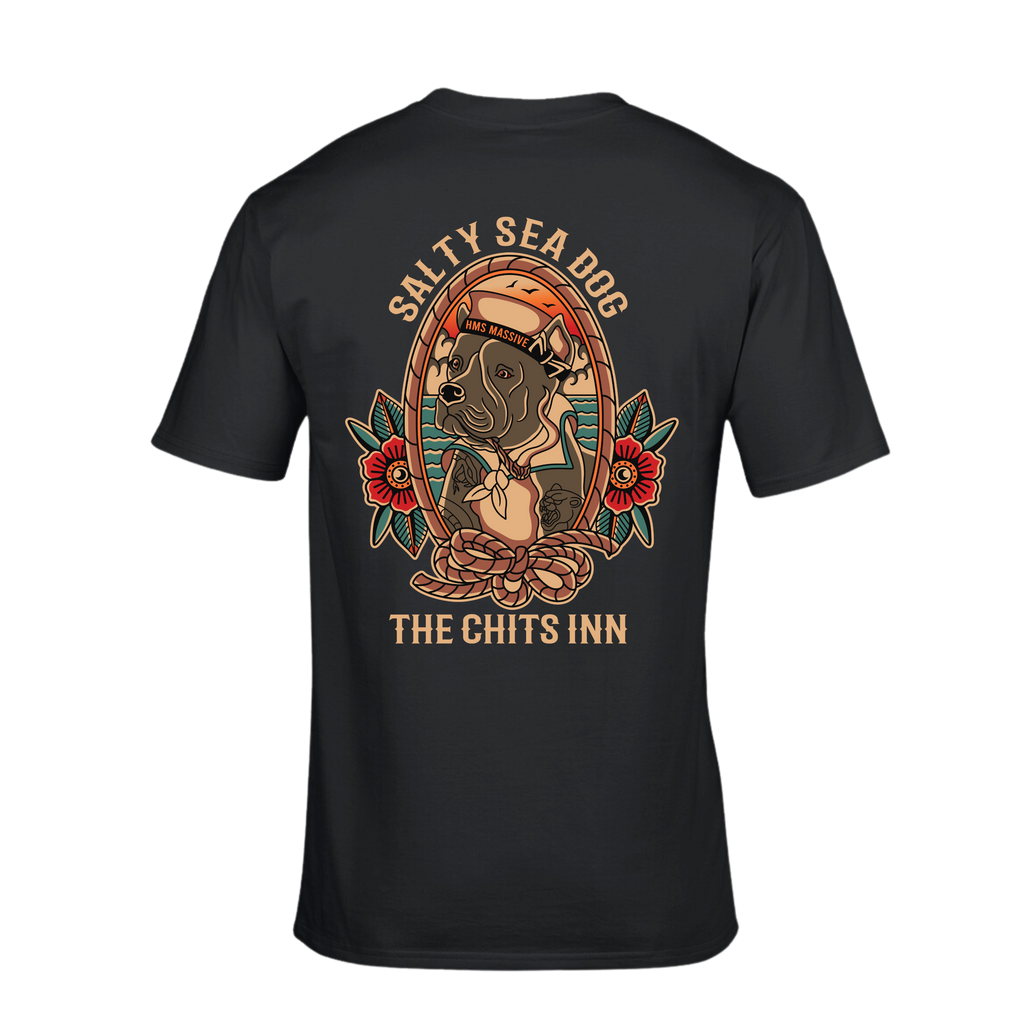 Ahoy, landlubbers! Dive into the depths of maritime fashion with The Chits Inn's exclusive "Saltiest Sea Dog" t-shirt. This eye-catching garment is more than just a piece of clothing; it's a statement that screams nautical prow...
