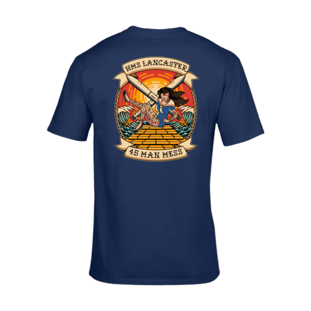 Ahoy, shipmates! Get ready to don the HMS Lancaster's 39 Man Mess custom T-shirt, a true salute to our crew's spirit and camaraderie. Crafted from 100% cotton, this beauty is as sturdy as a frigate and as comfortable as a calm ...