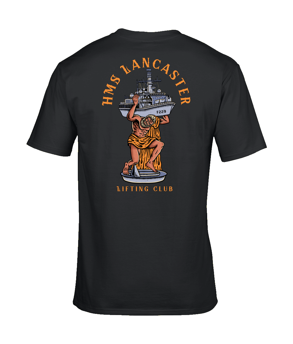 Flex your naval pride with our exclusive HMS Lancaster Lifting Club Tee, a robust tribute to the fitness enthusiasts aboard the "Queen's Frigate." This unique shirt, crafted by The Chits Inn, celebrates the strength and dedicat...