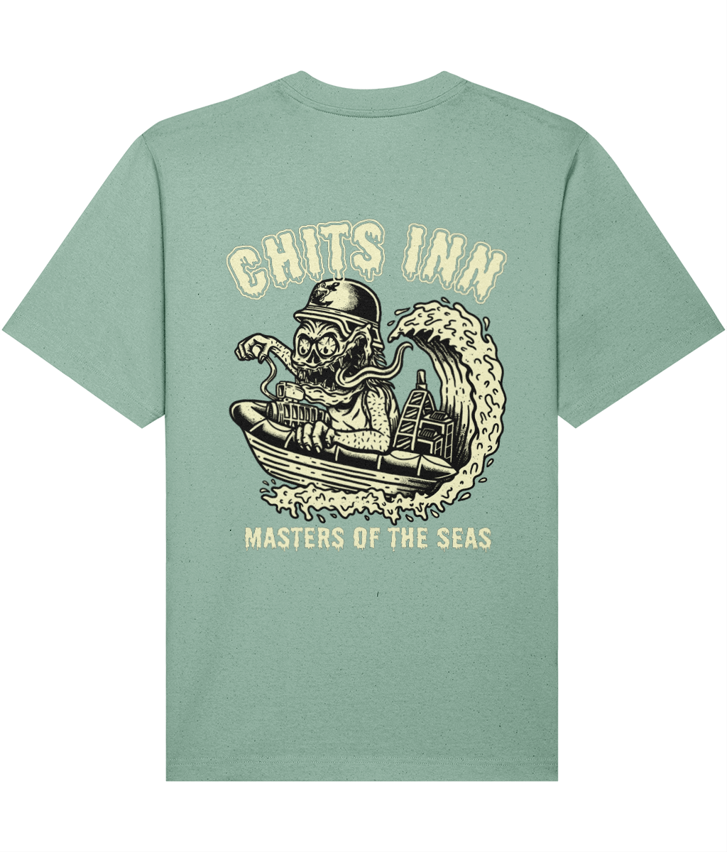 Stand out with the exclusive Chits Inn "Masters of the Seas" T-shirt, featuring a bold, original graphic inspired by nautical legends. Crafted from 100% organic open end cotton, this heavyweight 240gsm tee delivers both prem...